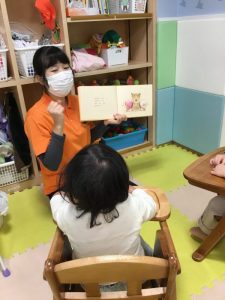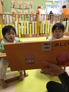 今回は「おしくらまんじゅう」という絵本をもも組さんで見た時の様子をご紹介させていただきます![]()