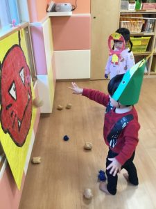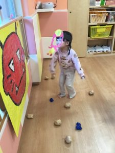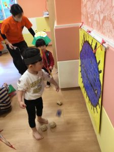 パネルに向かって豆巻きをして遊びましたよ❣️