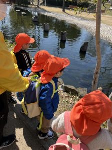 鯉が泳いでるのをじーっと見ていた子どもたちでした🐟