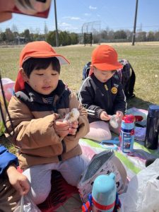 前日からおにぎり弁当を持ってくるのを楽しみにしていたりんごぐみさん🍎