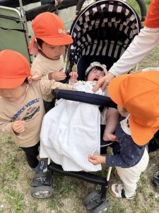 まだ泣いてしまうお友だちもいますが、少しずつ保育園生活にも慣れ戸外遊びでは元気いっぱい探索をして楽しんでいます☀️