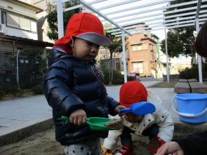 保育園の子どもたちは寒さに負けず散歩に行き、公園で遊びました![]()
