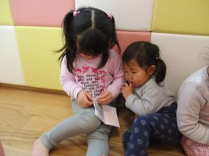 そんなりんご組さんはいちご組さんに何やらプレゼントを………![]()