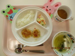 4月17日(水)の献立 ・ごはん ・みそしる ・豆腐のつくね焼き ・ポテトサラダ