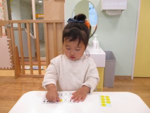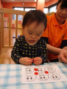 ペタペタ上手にアンパンマンの鼻や頬っぺたに貼っていました!!