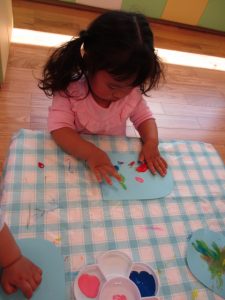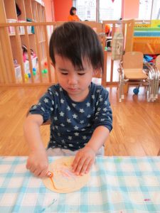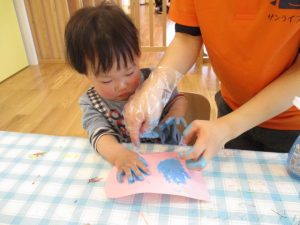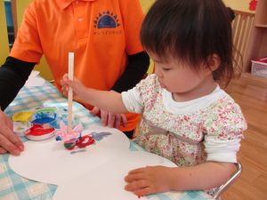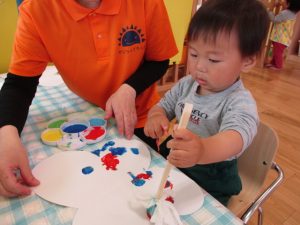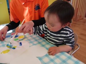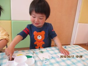 泣いていた子も泣き止み、興味津々で取り組んでいました![]()