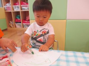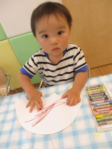 どんなに塗っても出てくるクレパスを見て不思議そうにする子どもたち\(^o^)/