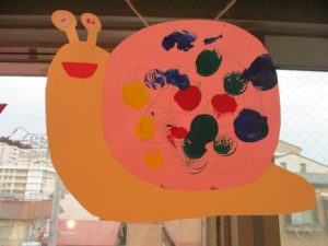 次は2歳児、りんご組さんの製作{かたつむり}です?☆彡☆彡