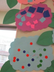 最後は1,2歳児合同の製作、{アジサイ}です❀