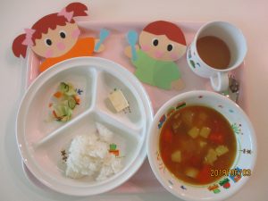 6月3日(月)の献立 ・ごはん ・チキンカレーシチュー ・甘酢和え ・チーズ