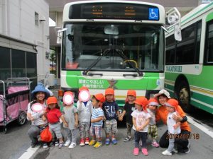 普段散歩の時によくバスを見かけ、子どもたちもバスを見るのが大好きです![]()