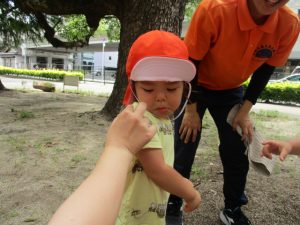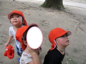さて、今回は気温が少しでも低い日を見つけて戸外に出た時の、子どもたちの様子をお届けしたいと思います![]()