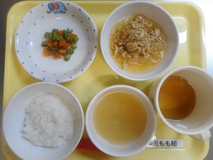 粥 味噌汁 そぼろ煮 ゆでにんじん