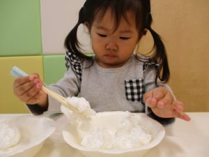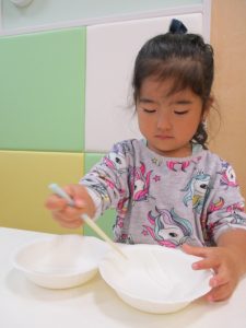りんご組さん、お箸を使う練習をしています![]()