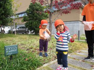 りんご組さんもいちご組さんと同様に、落ち葉や枯れ葉を拾いました(*^^*)