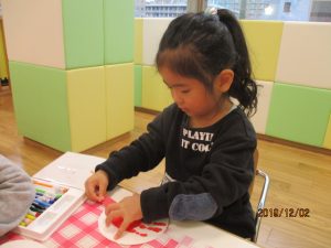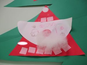 切ったものはサンタさんの服の模様になりました。ペタペタ貼ります
