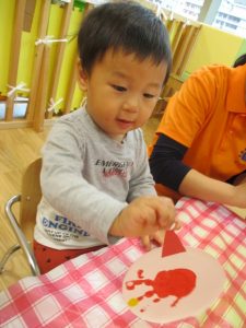 次は2歳児りんご組さんの製作、【サンタさん】です\(^o^)/