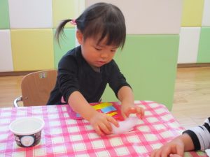 写真にはありませんが、折り紙をちぎるのもとっても上手になりました