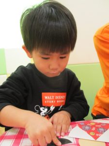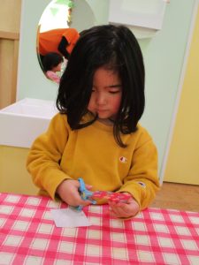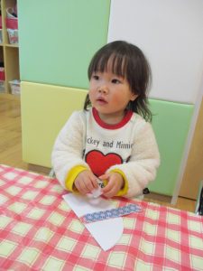 りんご組さんお得意のはさみ✂を使ってお洋服を作ります
