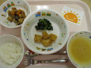 ※大豆は、ご家庭ではあまり食べる機会がないかと思いますが、子どもたちは「おまめだ~」と喜び、完食してくれました♪