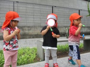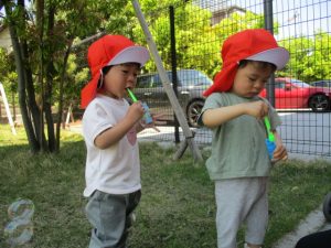 最近、しゃぼん玉をする事が多いのですが、回数を重ねるごとに上手になり