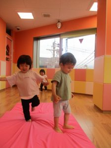 音楽をかけるとみんなマットの上で跳ねたり寝転んだり、、、、![]()