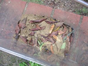 前は、緑の葉っぱだけが沢山入っていたのですが、ちゃんと土と枯れ葉が一杯です
