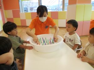 園でも無理には外に出ず、高槻市の熱中症情報などこまめに確認しながら、活動内容を考えています![]()