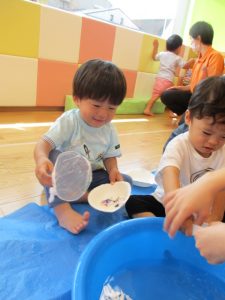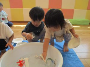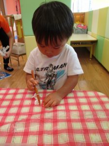 おててにいっぱいつく事もありましたが上手に貼る事が出来ました![]()
