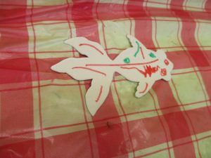 魚に色を塗ります!りんご組はペン、いちご組はクレヨンで塗りました✽