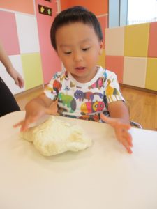 水や油を入れて、みんなでこねこね、、、、、![]()