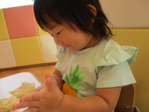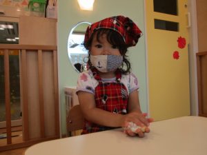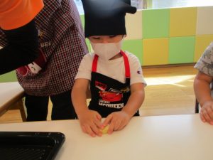 そしていちご組さんは、お月様に食べてもらうお団子作りをしました♪