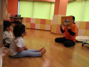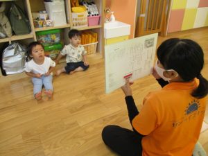 毎回ではありませんが、たまに紙芝居を読むと、子どもたちも物珍しそうに