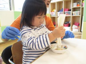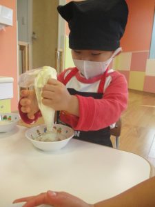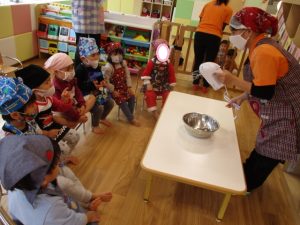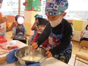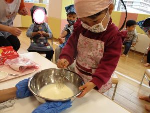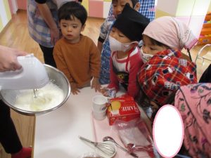 あまり見ない泡だて器に興味津々の子どもたちでしたよ☺☺