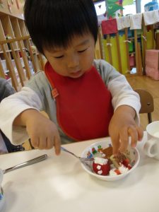 12月はイチゴ組のお友だちがひとり、2歳になりました(^^♪