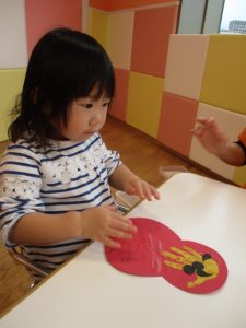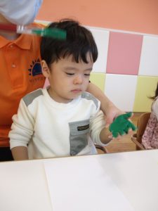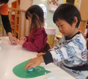 身体にスタンプをします(*^^*)ペットボトルのキャップです