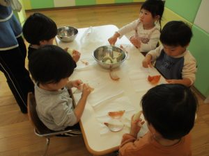 さて、今日は月1回行っているリンゴ組さんのクッキング!の様子をお届けしようと思います![]()