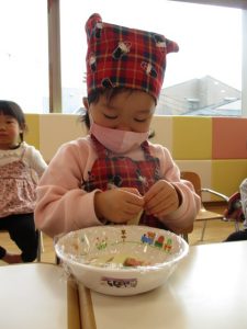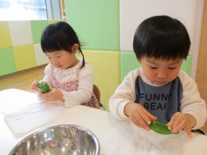 ピーマンの種は一粒ずつ取っています(笑)とっても上手です![]()
