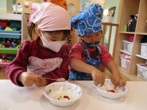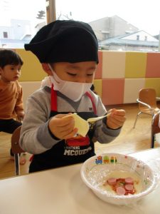 その後はイチゴ組さんが下準備した玉ねぎやピーマン、