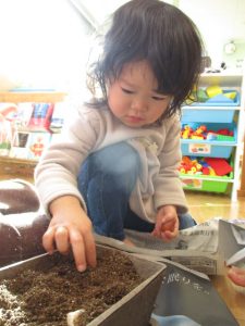 先日2歳児さんがお花の球根を植えてくれました![]()