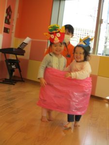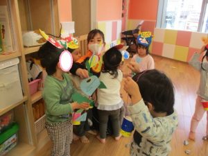 お面をつけてみんなで?鬼のパンツ?を踊り、、、、