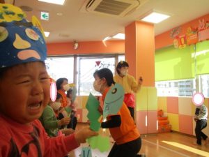 鬼さんが来たときは、沢山泣いているお友だち、勇敢に戦うお友だち、