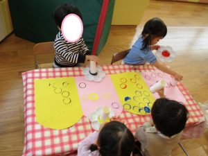 こちらはトイレットペーパーの芯でハンコをします