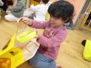 お家からエコバックを持って来てもらいました?