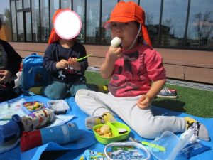 保護者の方に作ってもらったお弁当を持って行きましたよ!