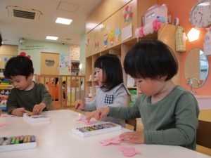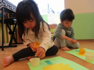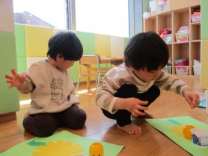 これからは、のりや絵の具、色々な用具を使って製作していきますのでお楽しみに