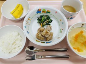 ※今日もほぼ完食で、たくさん食べました。ほうれん草は少し残っていましたが、苦手な物も、少しでも食べてみるというチャレンジ精神が素晴らしいです♪給食でも、成長できることはたくさんありますね♪