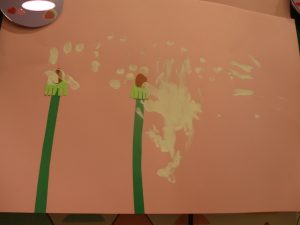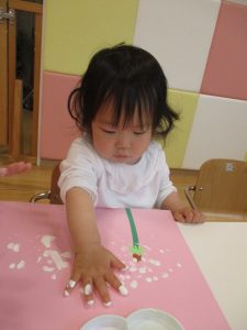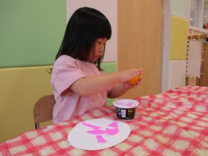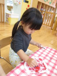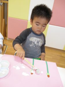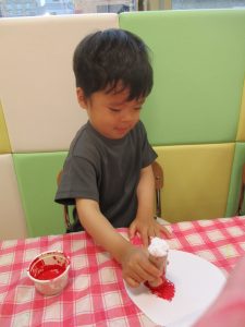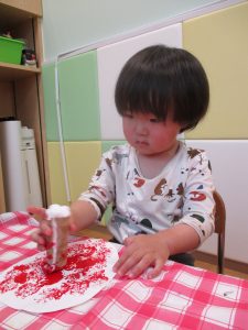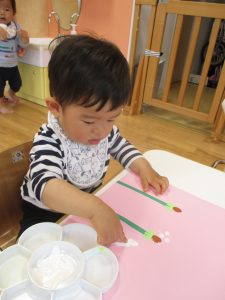 絵の具の感触が苦手なお友だちにはスタンプで楽しんでもらいました