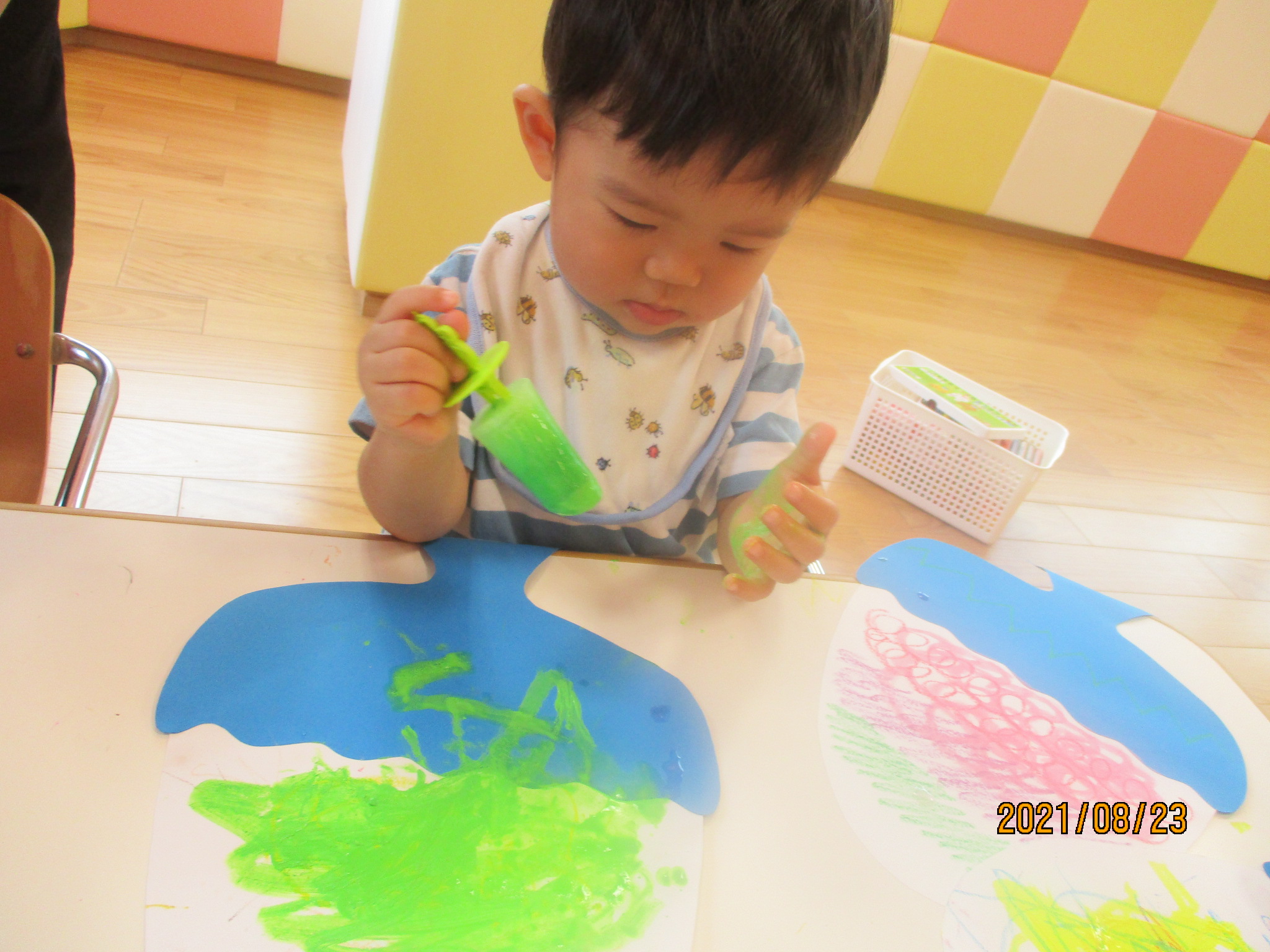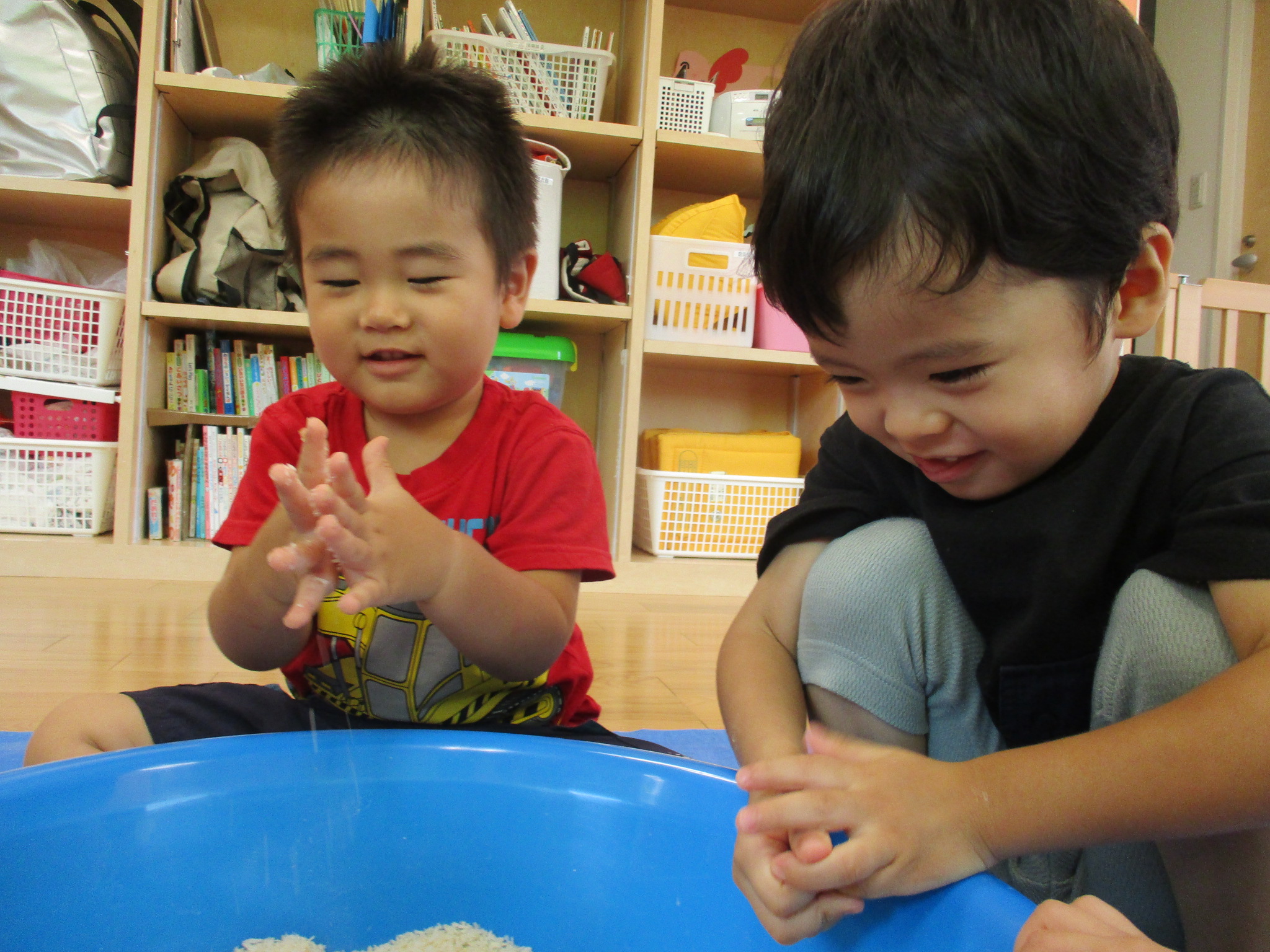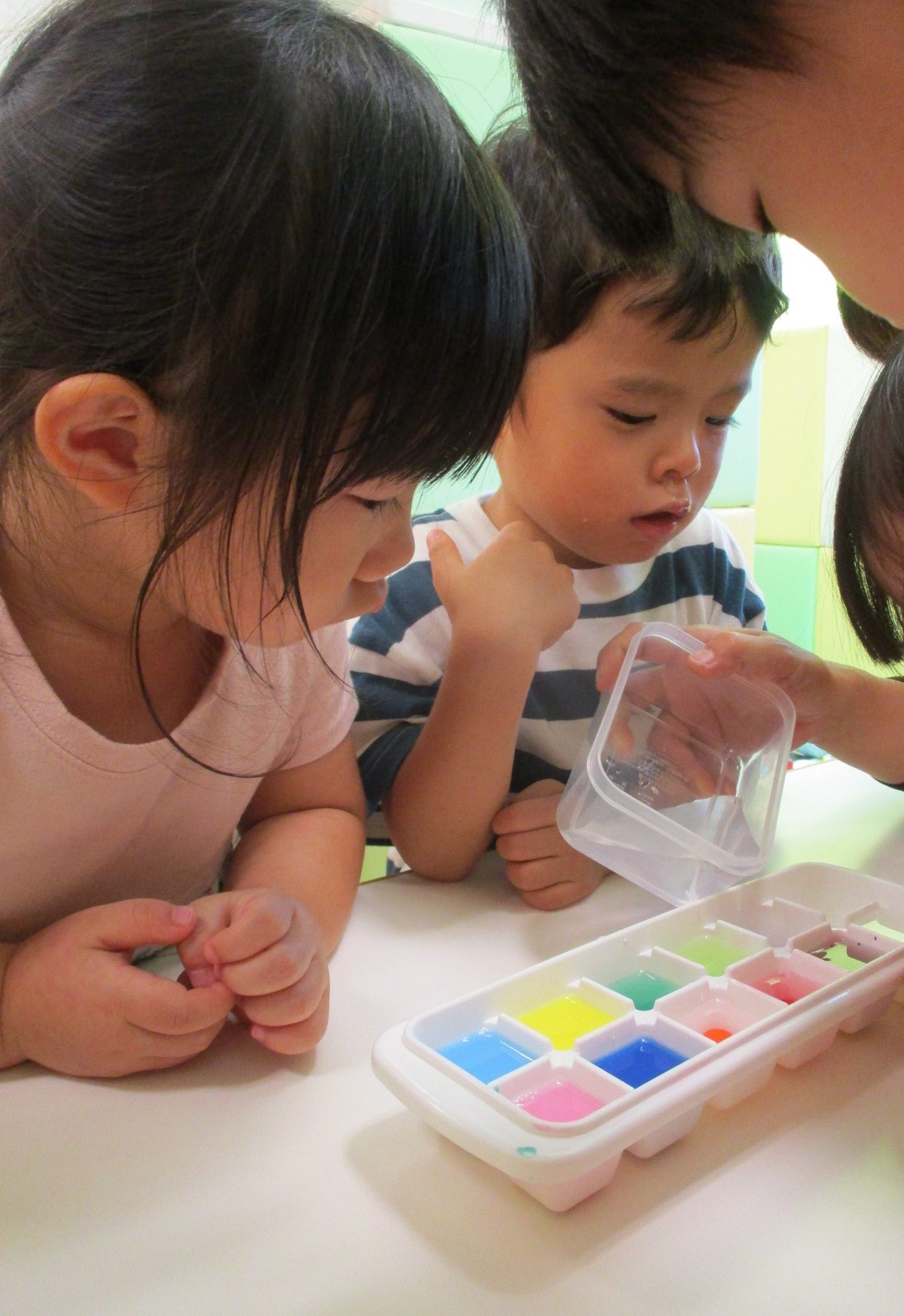 冷たーい?と、手を引っ込めるお友だちも(笑)