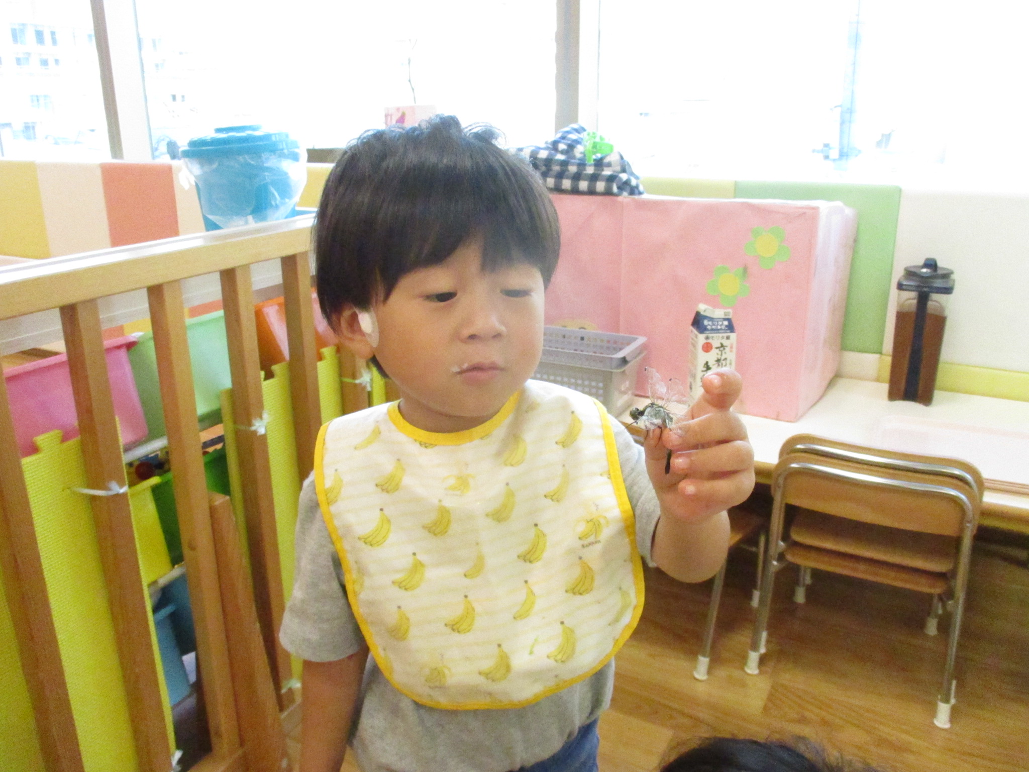 「パリパリしてるね」「いいにお〜い」と嬉しそうです?